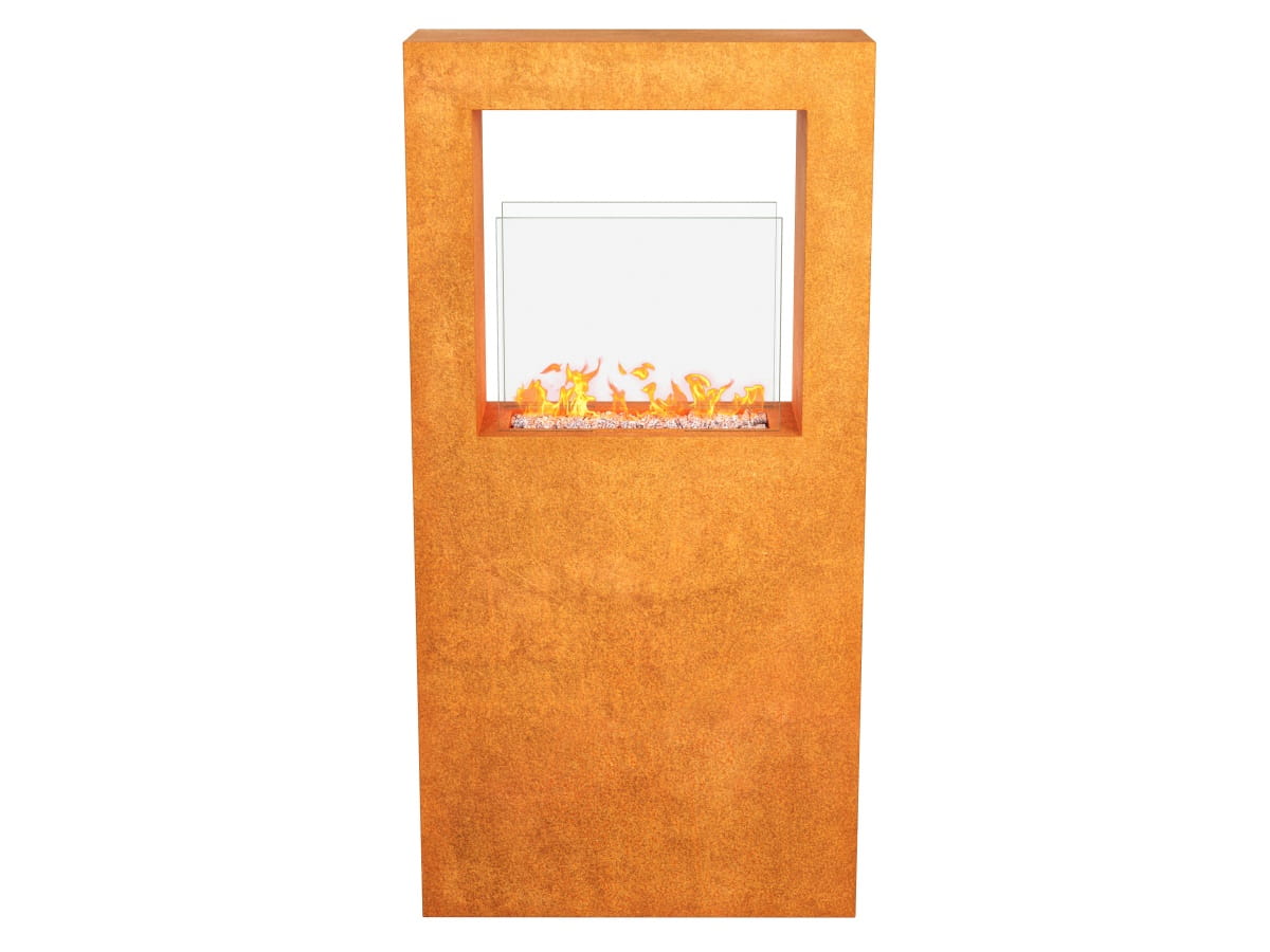 TRIO A biokominek wykonany ze stali corten o grubości 2 mm.