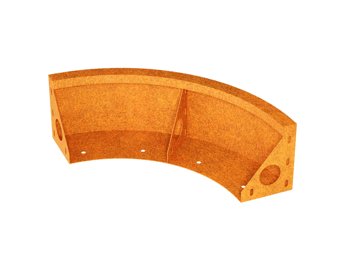 Border 90R500 Z to wytrzymały, modułowy i łatwy w instalacji element wchodzący w skład obrzeża trawnikowego. Wykonany został ze stali corten o grubości 2 mm. Odporne na działanie warunków atmosferycznych. Może służyć do ukrycia kabli elektrycznych oraz węży ogrodowych.