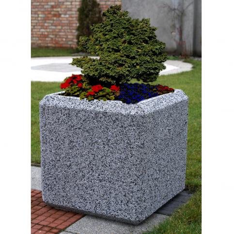 Elegankcka, kwadratowa donica wykonana w technologii betonu płukanego. Donica Ada do zastosowania na terenach zewnętrznych, kształt i forma tworzą komplet z donicą Aldona.