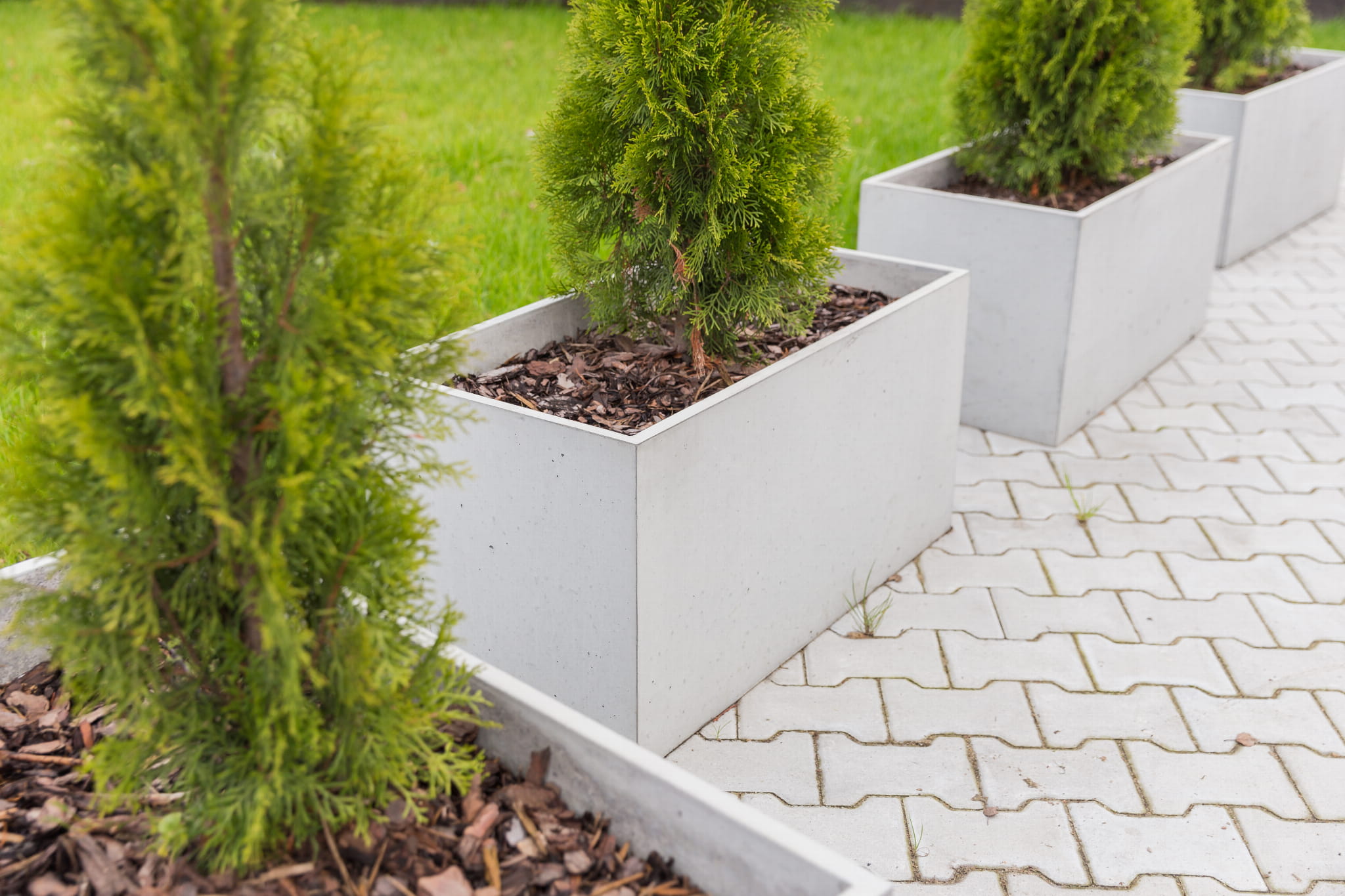 Gładkie w dotyku, trwałe i cechujące się surowym wyglądem, przyciągną wzrok każdego, kto znajdzie się w ich otoczeniu. Oferujemy donice betonowe w 3 podstawowych kolorach (naturalnym szarym, białym i grafitowym). Posiadamy 19 kształtów produkowanych przez nas wyrobów – od małych, którymi można ozdobić parapet po duże, z których można zbudować ścianę tworzącą strefy (np. w takim pomieszczeniu jak salon czy biuro). Niezależnie od tego, czy występują w grupie, czy jako pojedynczy element, nasze betonowe donice wzbogacą swoim nowoczesnym designem każde wnętrze, w którym się znajdą.