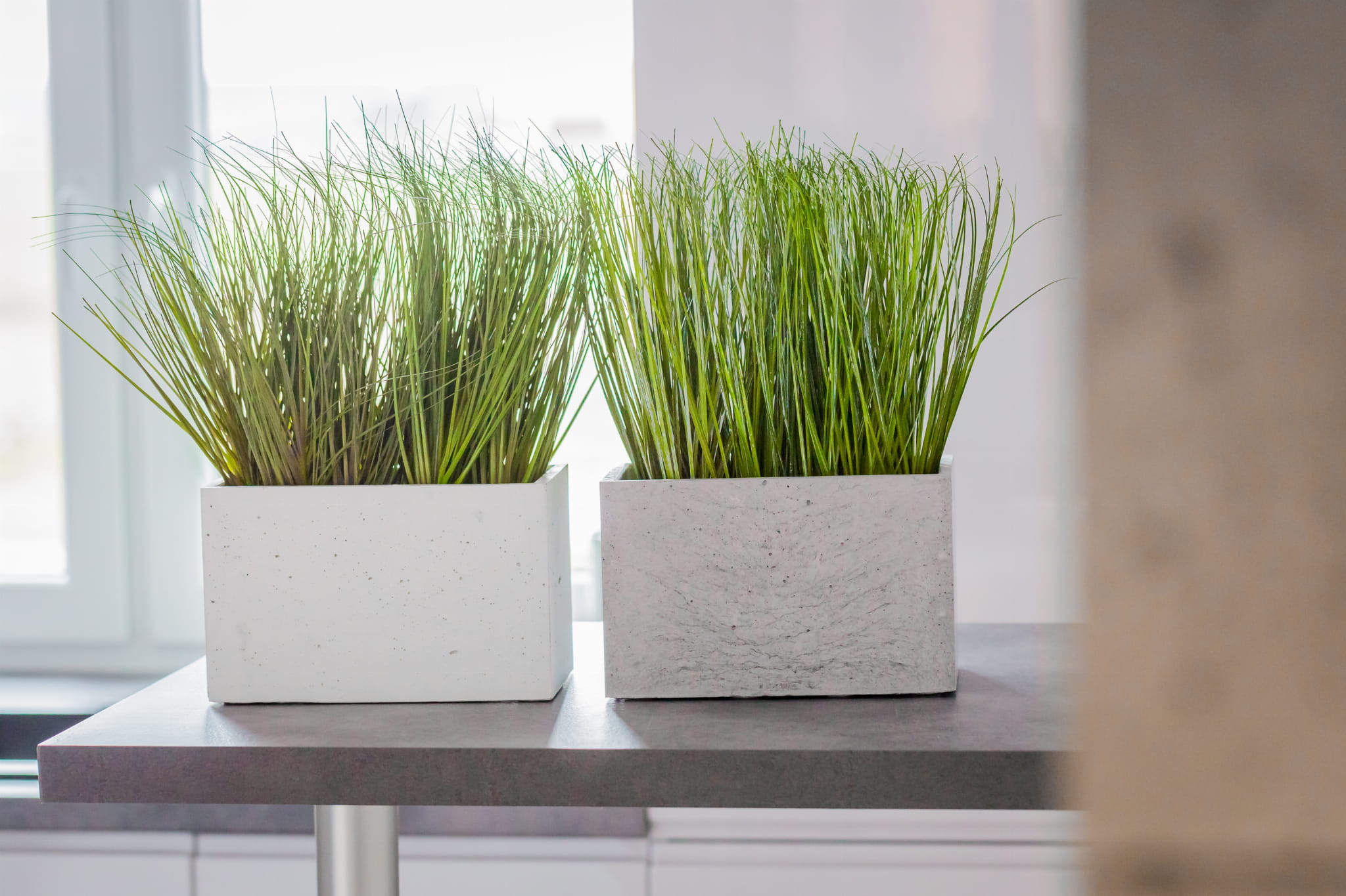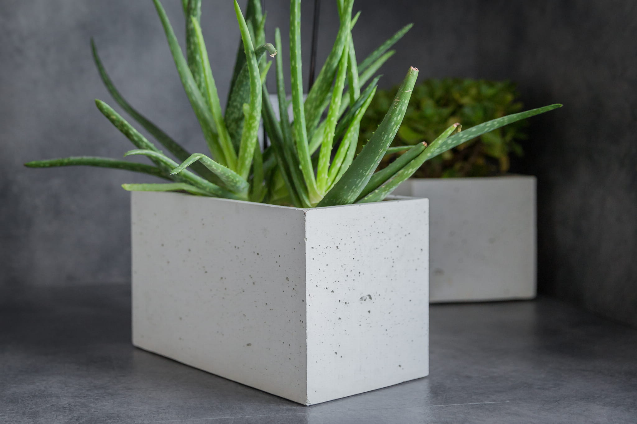Gładkie w dotyku, trwałe i cechujące się surowym wyglądem, przyciągną wzrok każdego, kto znajdzie się w ich otoczeniu. Oferujemy donice betonowe w 3 podstawowych kolorach (naturalnym szarym, białym i grafitowym). Posiadamy 19 kształtów produkowanych przez nas wyrobów – od małych, którymi można ozdobić parapet po duże, z których można zbudować ścianę tworzącą strefy (np. w takim pomieszczeniu jak salon czy biuro). Niezależnie od tego, czy występują w grupie, czy jako pojedynczy element, nasze betonowe donice wzbogacą swoim nowoczesnym designem każde wnętrze, w którym się znajdą.