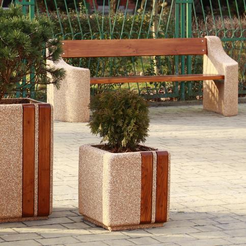 Largo 1 to niższa wersja kwadratowej donicy z rodziny Largo. Cechą charakterystyczną donic z tej rodziny jest wzbogacenie betonu elementami drewnianymi. Bo­ga­ta ko­lo­ry­sty­ka do­nic oraz no­wo­cze­sne wzor­nic­two do­sko­na­le har­mo­ni­zu­ją z róż­no­rod­ną zie­le­nią. Kształ­ty do­nic po­zwa­la­ją na do­wol­ne kom­po­zy­cje ar­chi­tek­to­nicz­ne za­rów­no na ma­łych jak i du­żych prze­strze­niach.