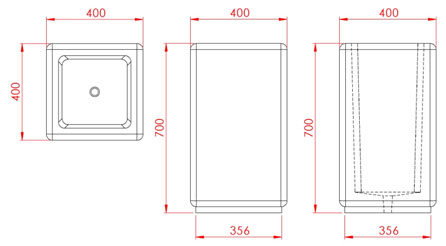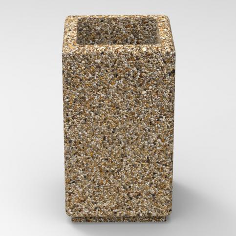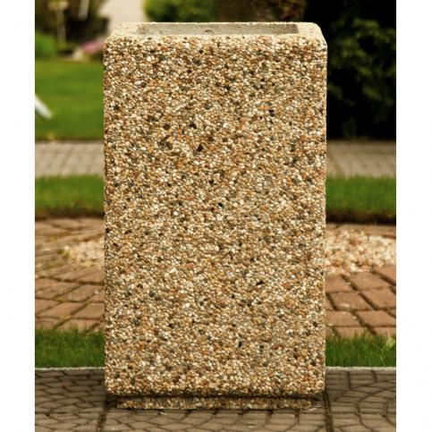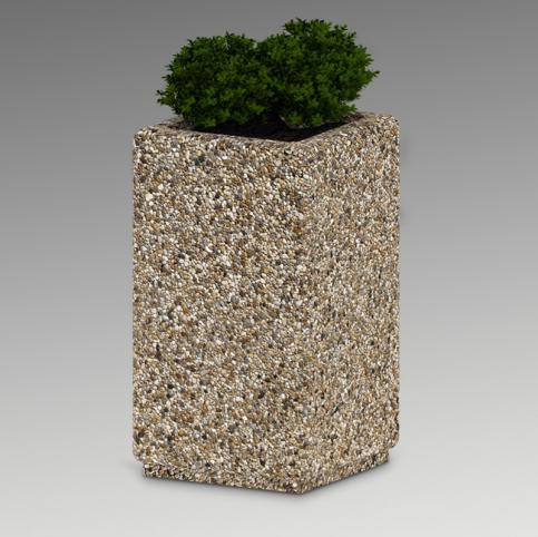 Donica betonowa, kwadratowa o wymiarach zewnętrznych: (dł. × szer. × wys.) 40x40x70cm. Donica wykonana w technologii betonu płukanego. Donica wyposażona została w otwór odwadniający. Donica nie nadaje się do stosowania w miejscac narażonych na kontakt z solami odladzającymi.