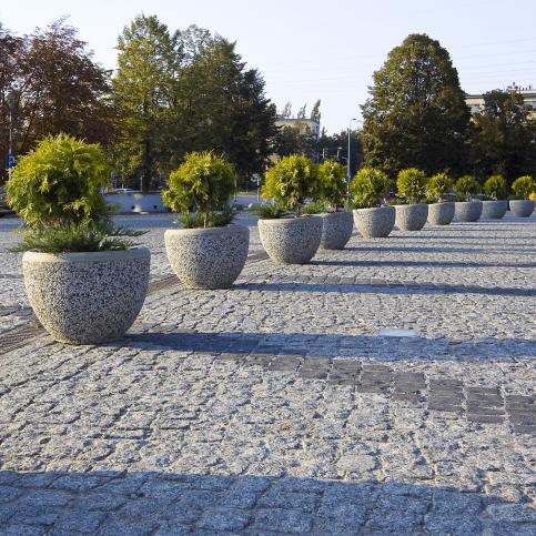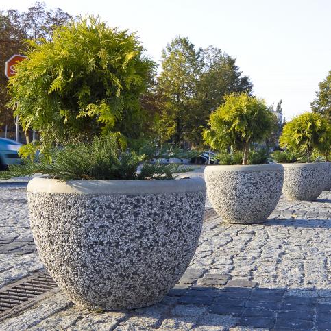 Okrągła donica Magda wykonana w technologii betonu płukanego to doskonała forma uzupełnienia otoczenia z możliwością wykorzystania form zielonych. Z łatwością i estetycznymi efektami łączy się z elementami ogrodzeń, płytek, schodów i z zabudową posesji.