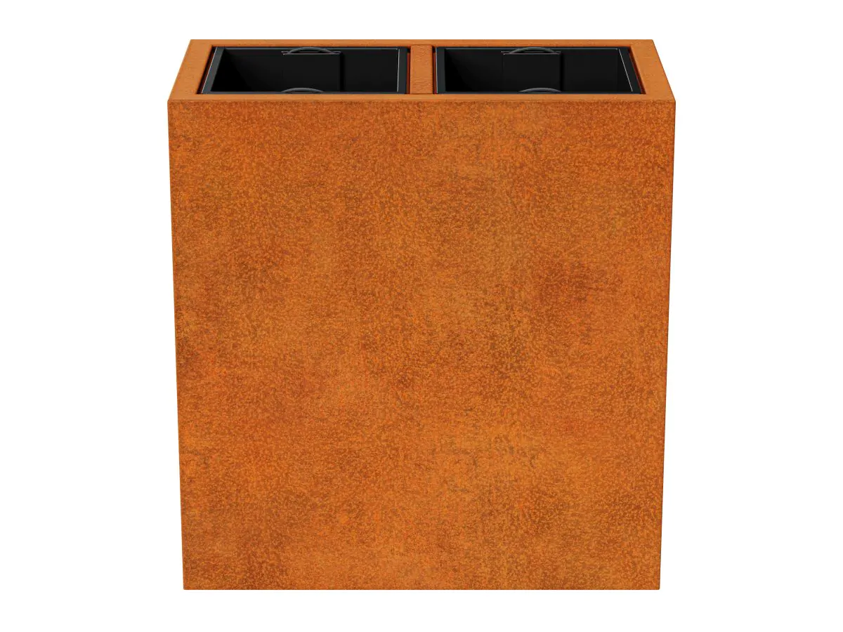 DEPO7 to donica ogrodowa wykonana ze stali cortenowej o grubości 2mm przeznaczona do sadzenia roślin w plastikowych, wyjmowalnych pojemnikach, dołączonych do zestawu. W standardzie donica wyposażona jest w nóżki.