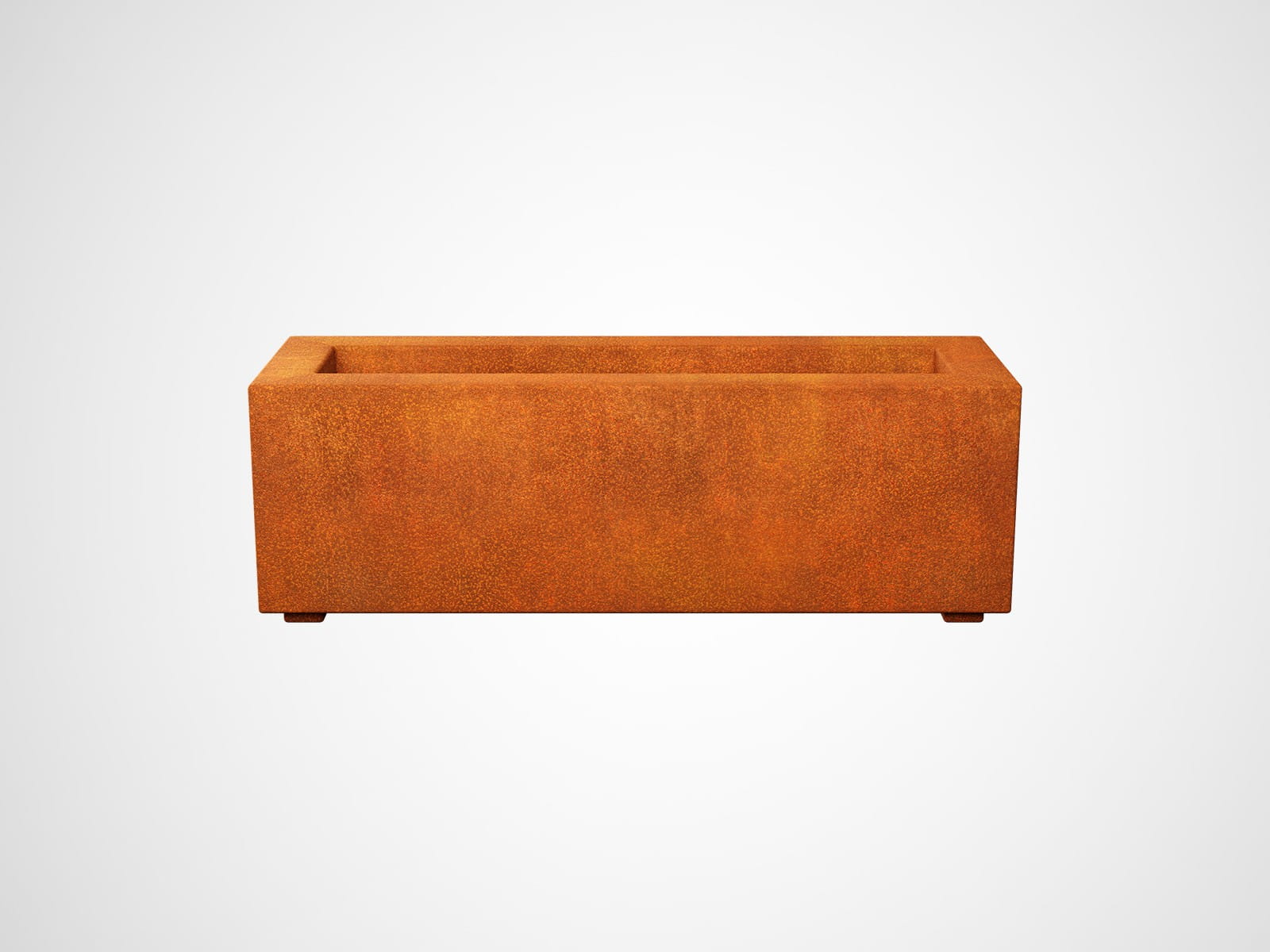 LARGO1 to mała prostokątna donica ogrodowa. Została wykonana ze stali cortenowej o grubości 2mm. W standardzie donica wyposażona jest w otwory odpływowe umieszczone w dnie oraz nóżki.