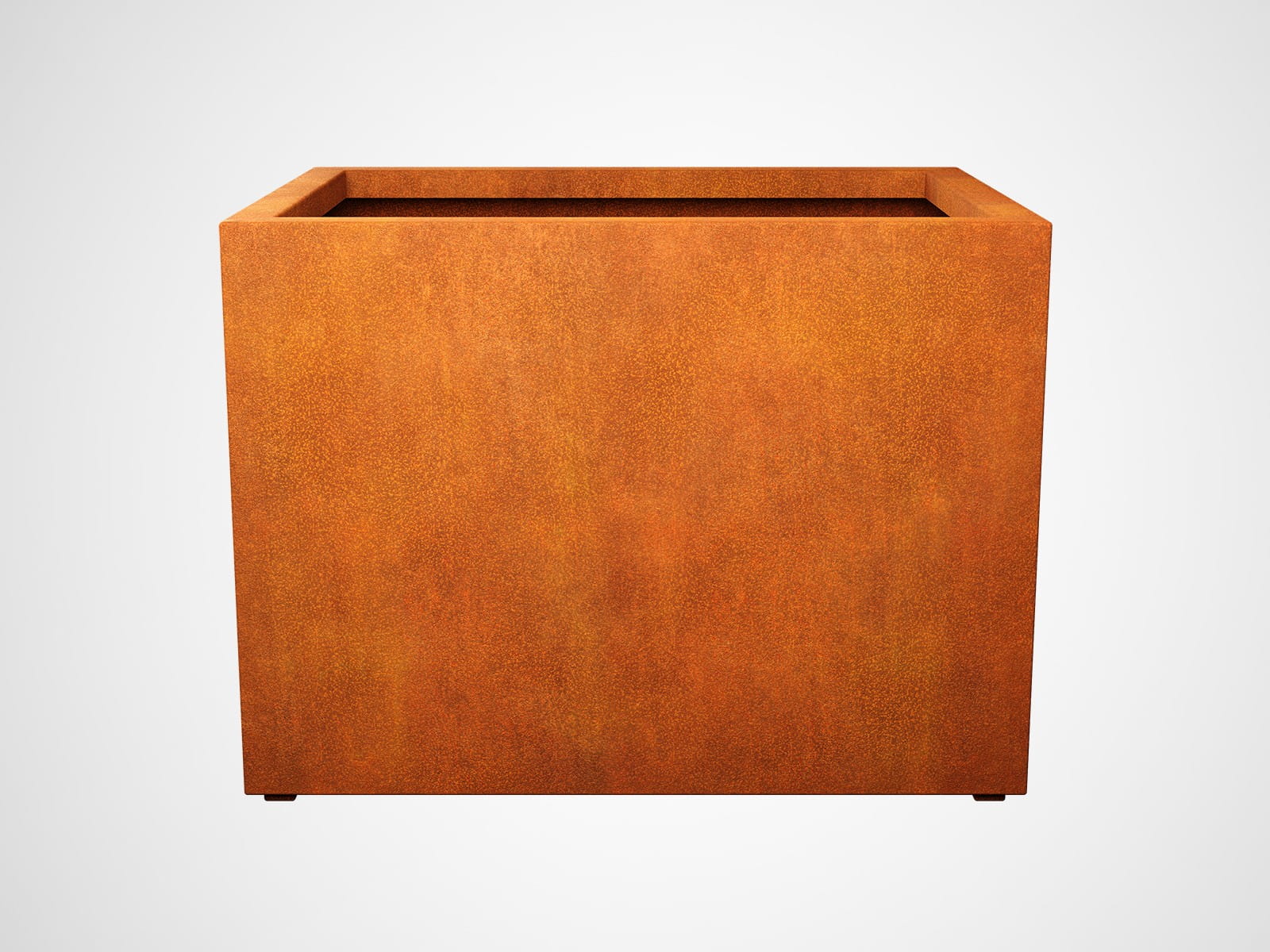 ARGO9 to średniej wielkości prostokątna donica ogrodowa. Została wykonana ze stali cortenowej o grubości 2mm. W standardzie donica wyposażona jest w otwory odpływowe umieszczone w dnie oraz nóżki.