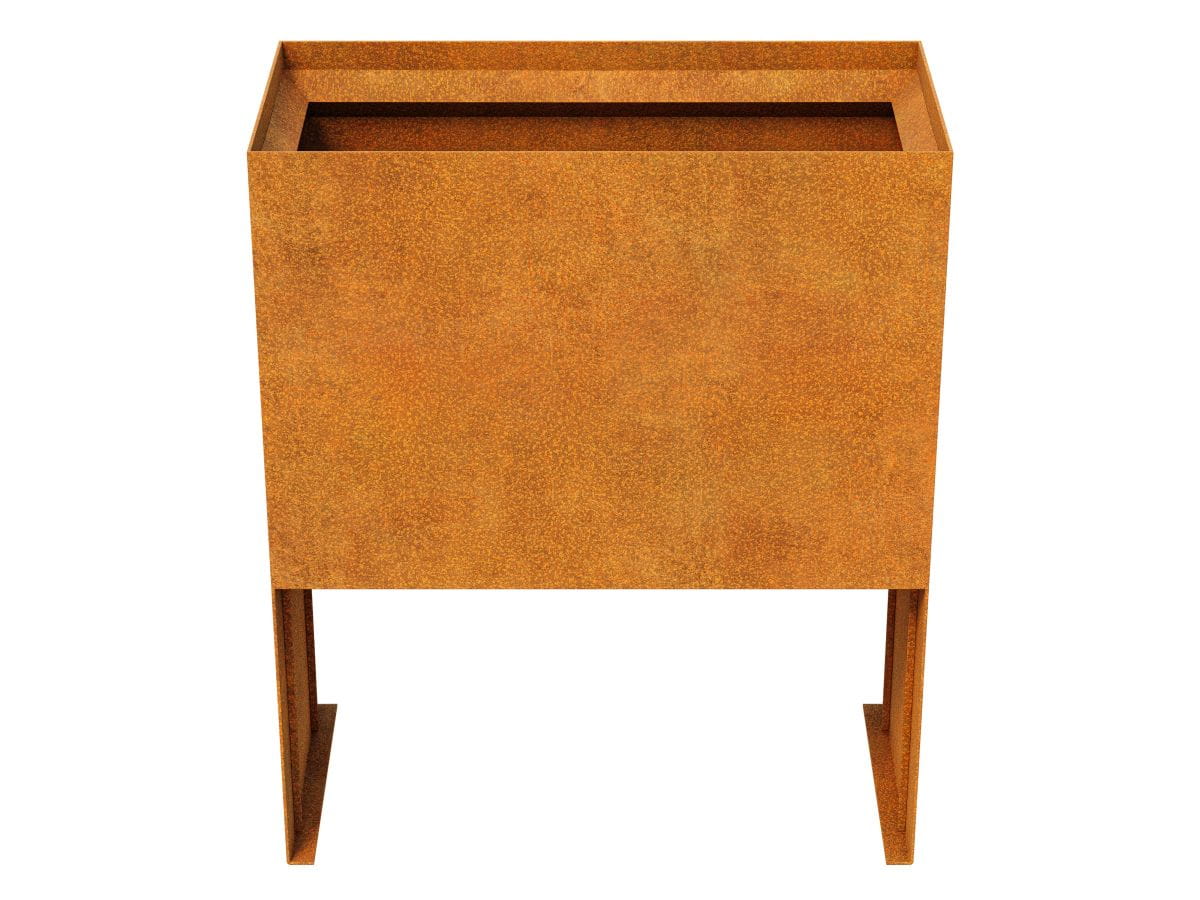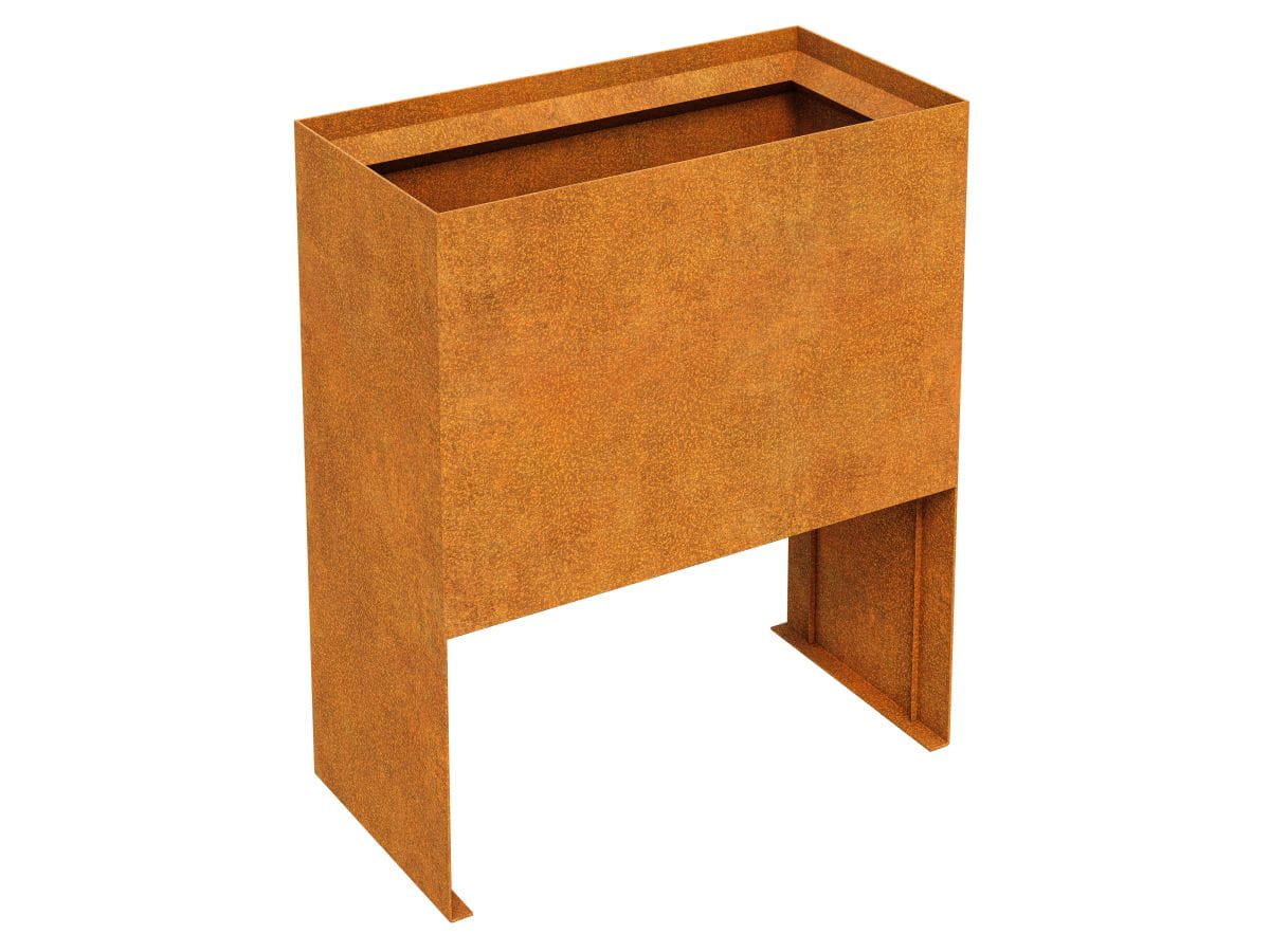 PLANTA 15 to donica ogrodowa wykonana ze stali cortenowej o grubości 2mm ze skośnym rantem oraz długimi wspornikami.