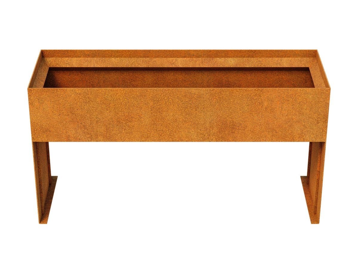 PLANTA 16 to donica ogrodowa wykonana ze stali cortenowej o grubości 2mm ze skośnym rantem oraz długimi wspornikami.