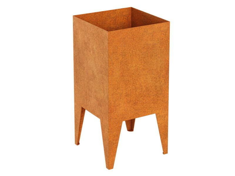 Pierna 4 to donica ze stali corten zintegrowana z długimi nogami. Idealnie sprawdza się jako wystrój restauracji.