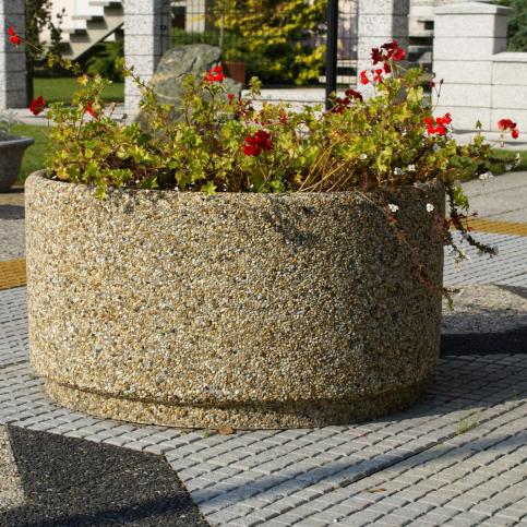 MIRA to donica parkowo-ogrodowa wykonana w technologii betonu płukanego, o wymiarach zewnętrznych: średnica 95 cm, wysokość 50 cm. Dzię­ki ofe­ro­wa­nej sze­ro­kiej ga­mie ko­lo­rów za­pew­ni każ­dej kom­po­zy­cji przy­jem­ny, es­te­tycz­ny wy­gląd. Za­sto­so­wa­na przy par­kin­gu, na chod­ni­ku czy ta­ra­sie uatrak­cyj­ni każ­dą prze­strzeń.