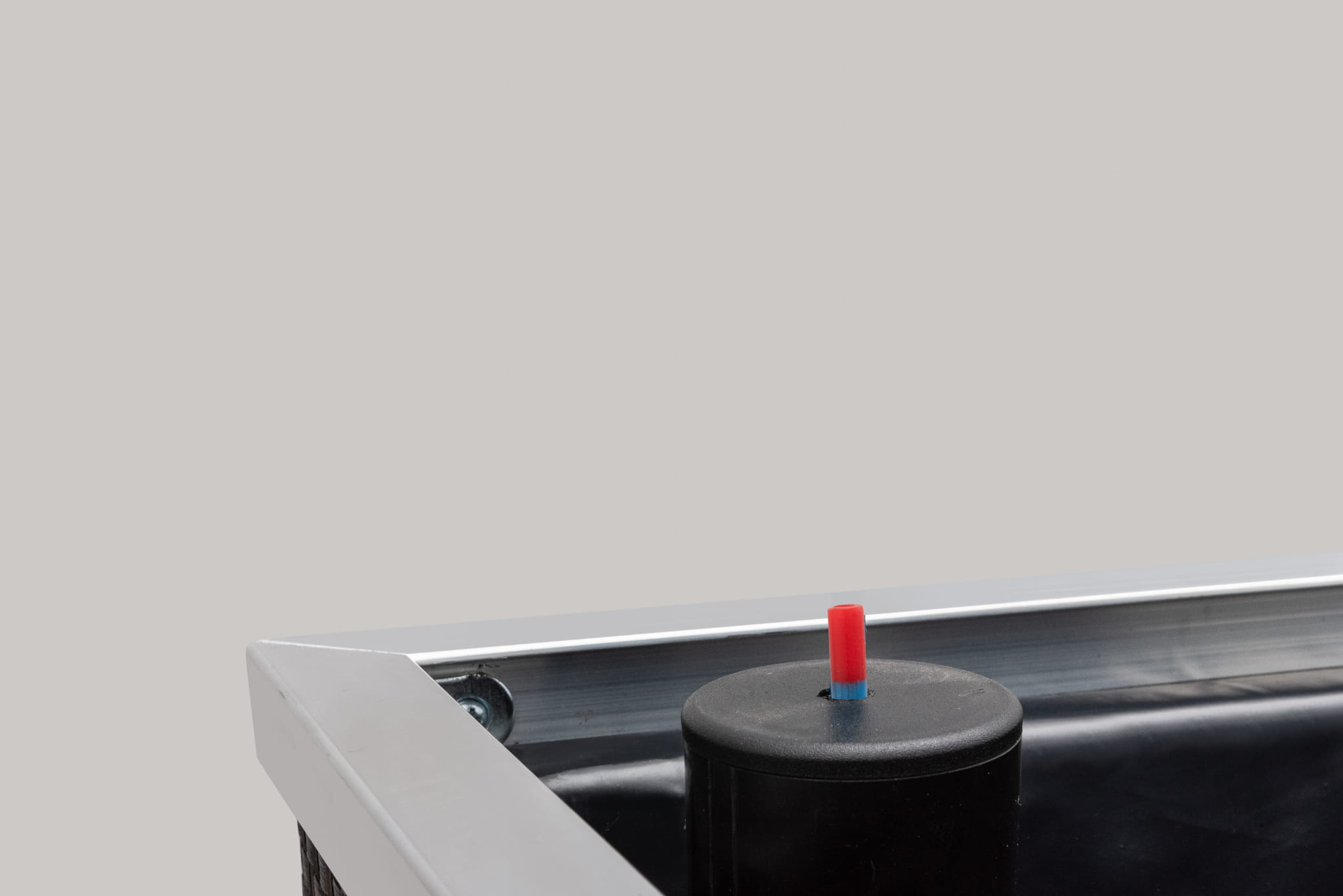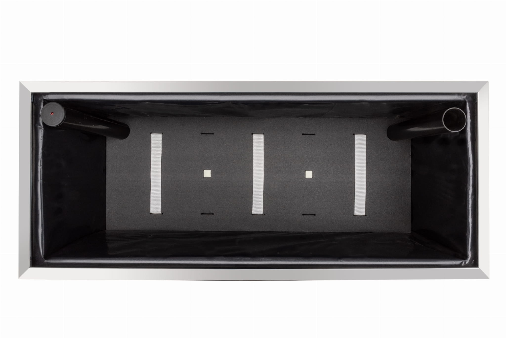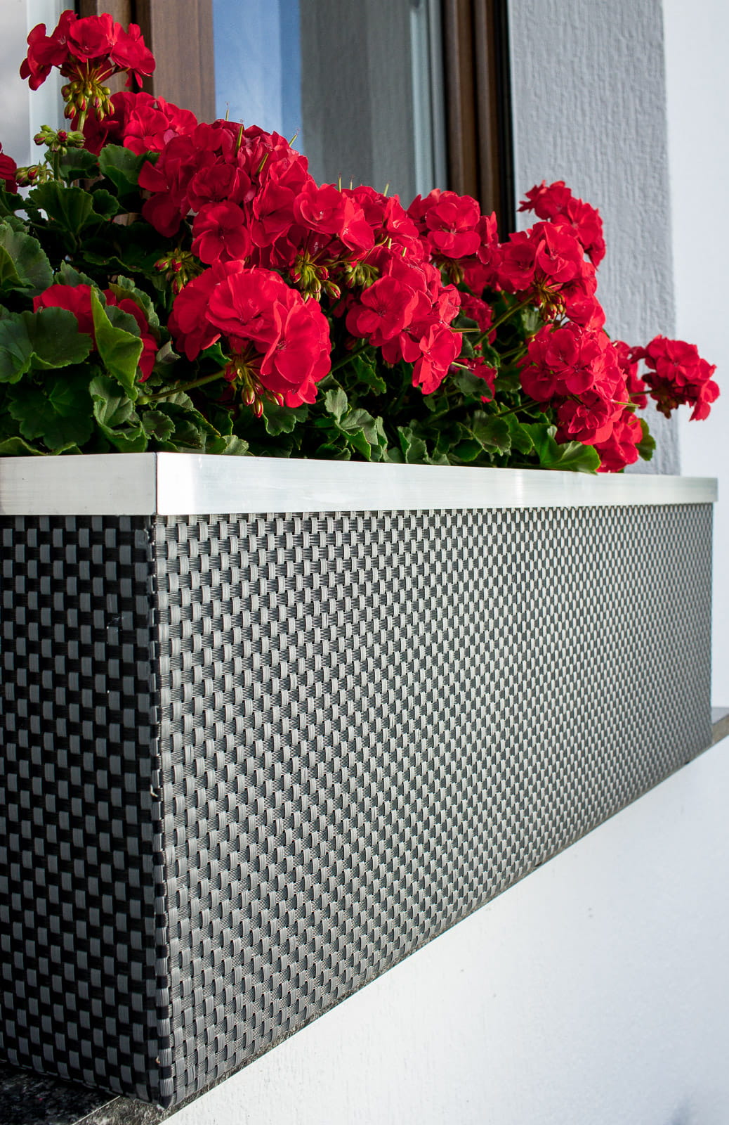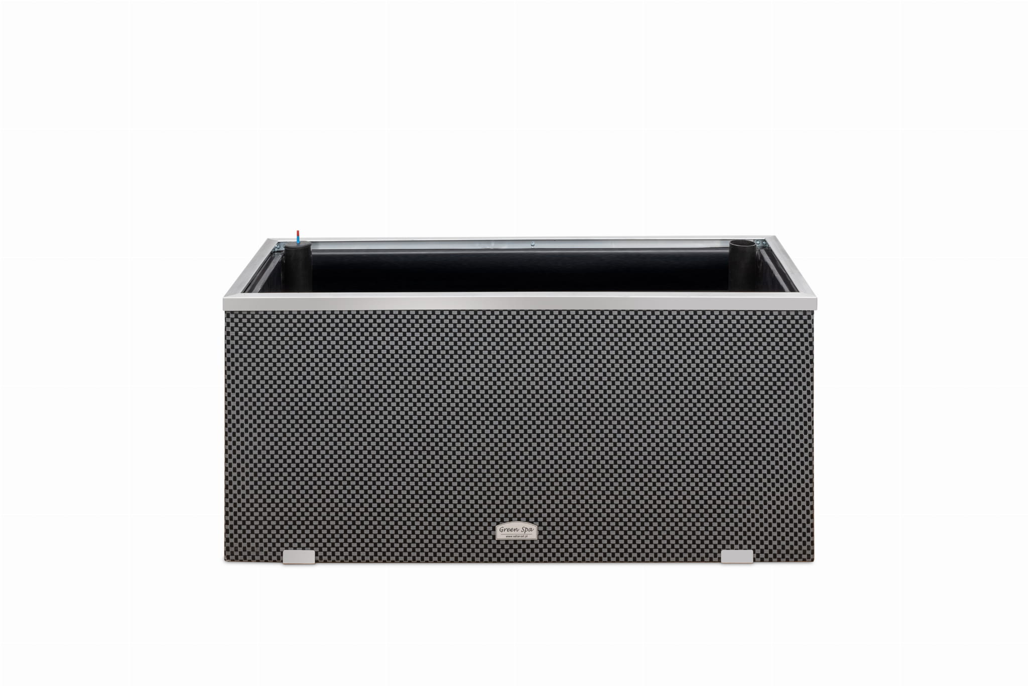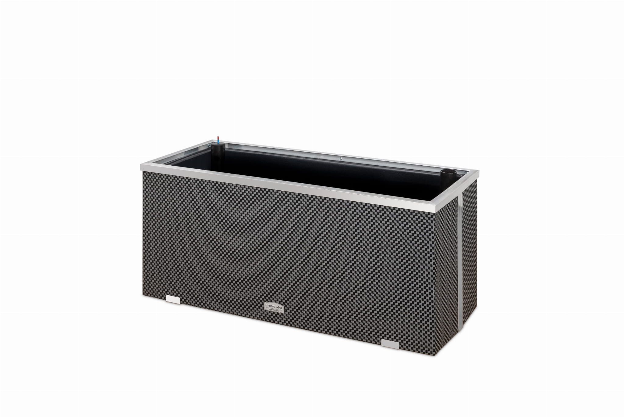 Wykonana wewnątrz z blachy ocynkowanej, zewnętrznie wykończona technorattanem i aluminium polerowanym. Dodatkowo donica posiada wewnątrz docieplenie wykonane z 2cm. styroduru i jest wyłożona czarną, grubą folią. Na dnie donicy umieszczony jest zbiornik na wodę przykryty styrodurem z umieszczonymi pasami umożliwiającymi dystrybucję wody do rośliny. Donica wyposażona jest we wlew wody oraz wskaźnik poziomu wody w zbiorniku. Pasy umieszczone w dnie donicy, zamoczone w wodzie znajdującej się w zbiorniku, prowadzą wodę do ziemi i korzeni rośliny, stopniowo ją nawadniając. Wskaźnik poziomu wody sygnalizuje moment kiedy należy uzupełnić zbiornik.