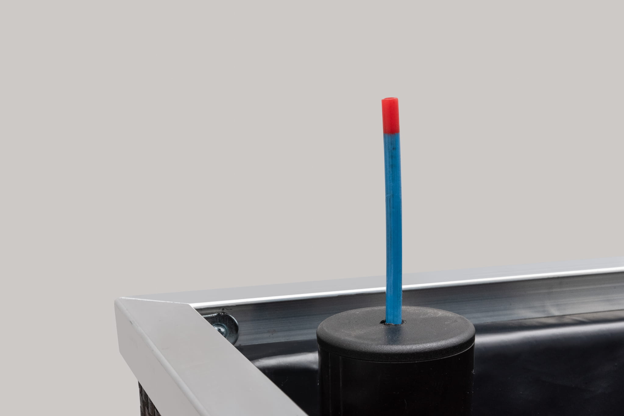 Wykonana wewnątrz z blachy ocynkowanej, zewnętrznie wykończona technorattanem i aluminium polerowanym. Dodatkowo donica posiada wewnątrz docieplenie wykonane z 2cm. styroduru i jest wyłożona czarną, grubą folią. Na dnie donicy umieszczony jest zbiornik na wodę przykryty styrodurem z umieszczonymi pasami umożliwiającymi dystrybucję wody do rośliny. Donica wyposażona jest we wlew wody oraz wskaźnik poziomu wody w zbiorniku. Pasy umieszczone w dnie donicy, zamoczone w wodzie znajdującej się w zbiorniku, prowadzą wodę do ziemi i korzeni rośliny, stopniowo ją nawadniając. Wskaźnik poziomu wody sygnalizuje moment kiedy należy uzupełnić zbiornik.