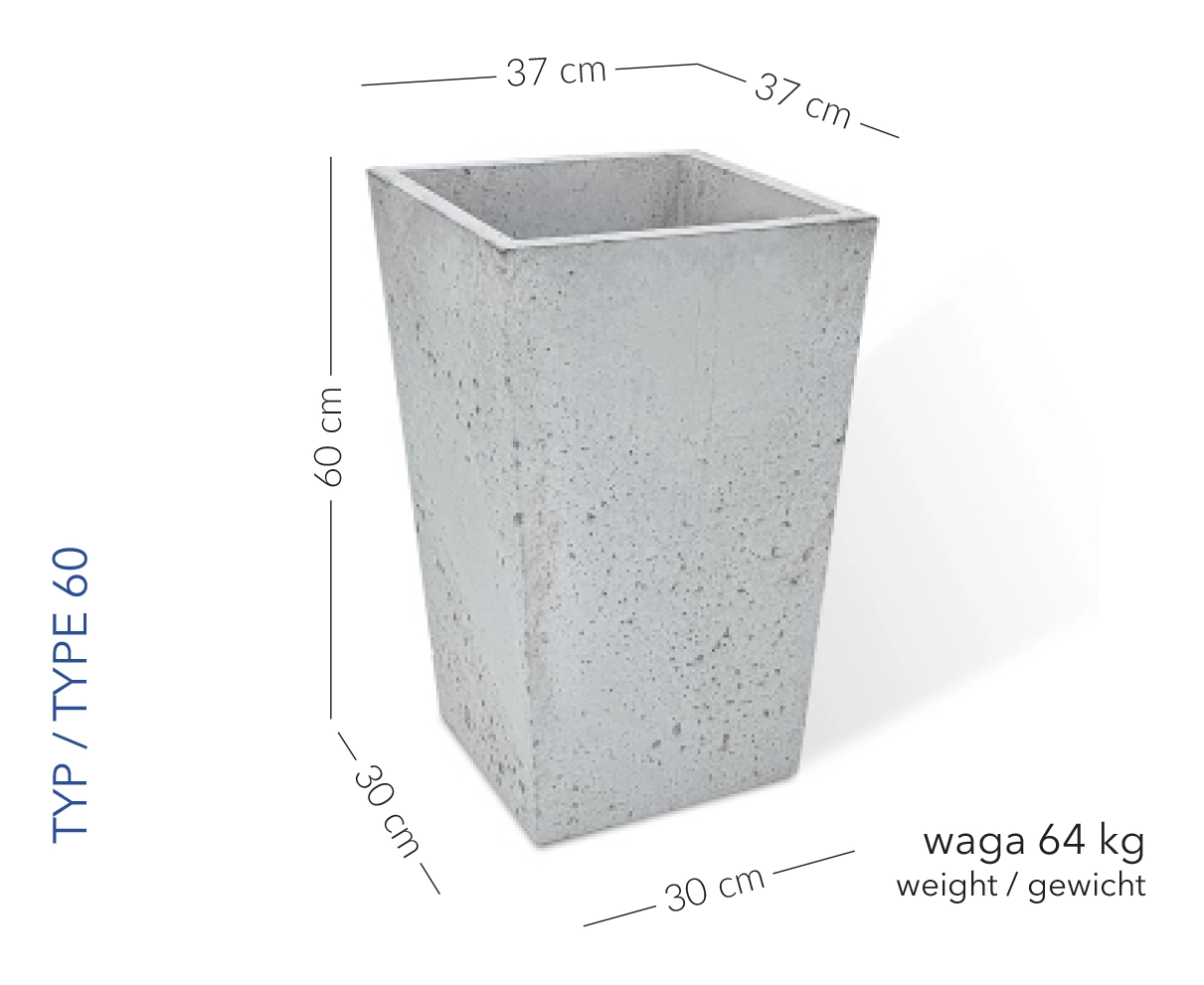 Donica Bolonia 37x37/30x30 x60h jasny szary TYP 60