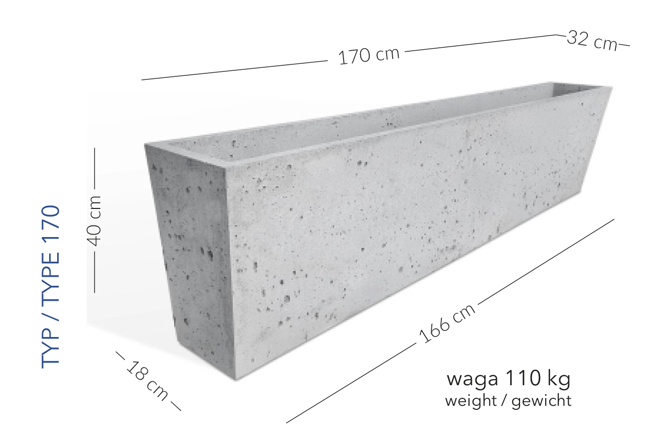 Donica Mediolan 170 x 32 x 40 h jasny szary TYP 170