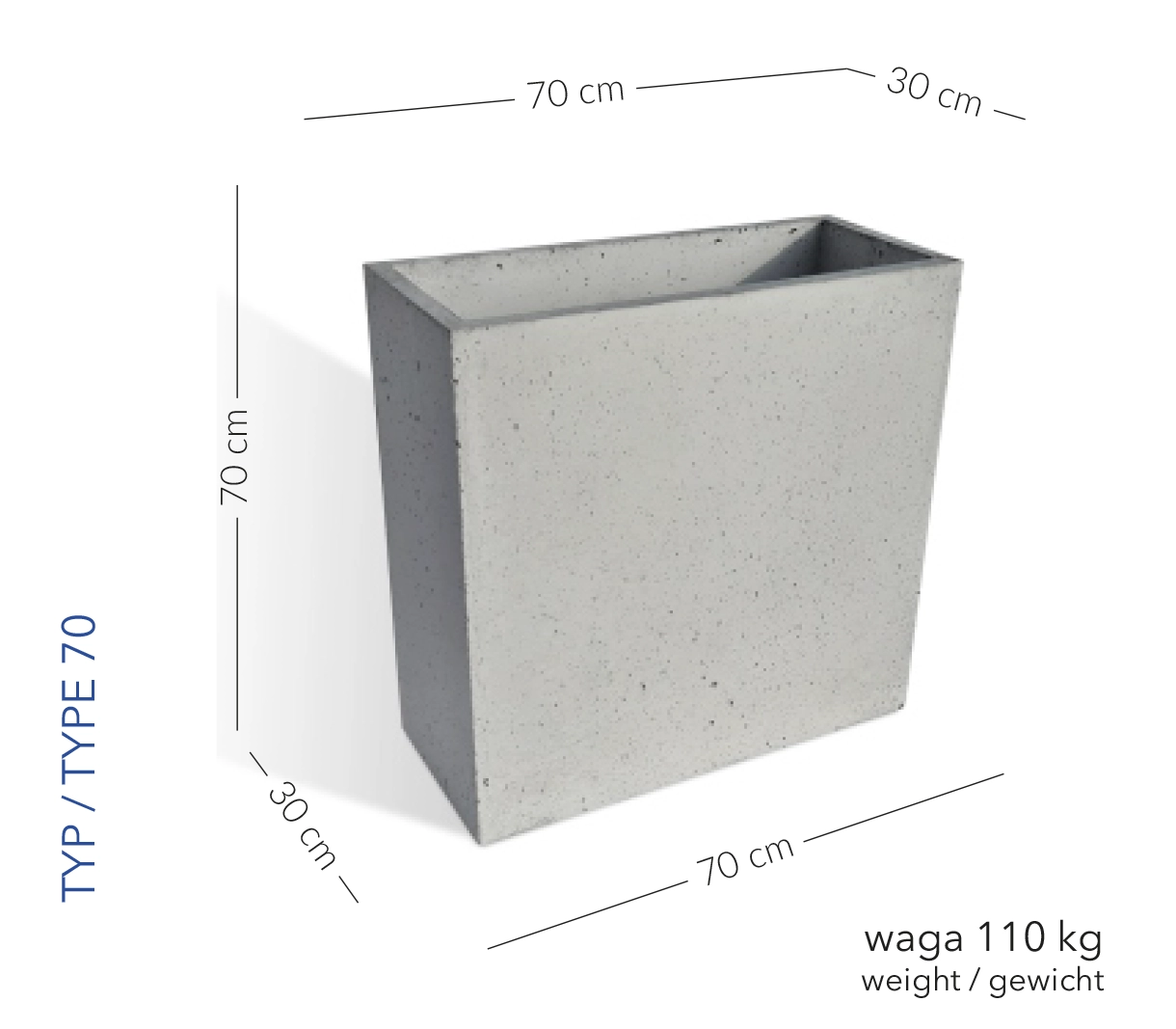 Donica Siena 70 x30 x 70 h jasny szary TYP 70