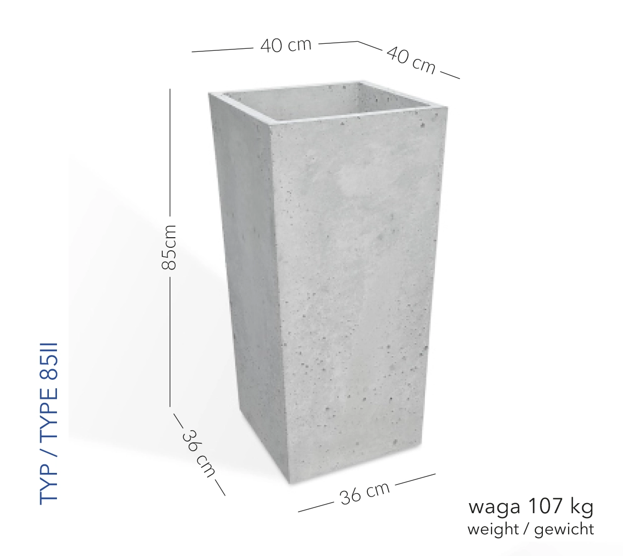 Donica Tivoli 40x40/36x36 x85 h jasny szary TYP 85II