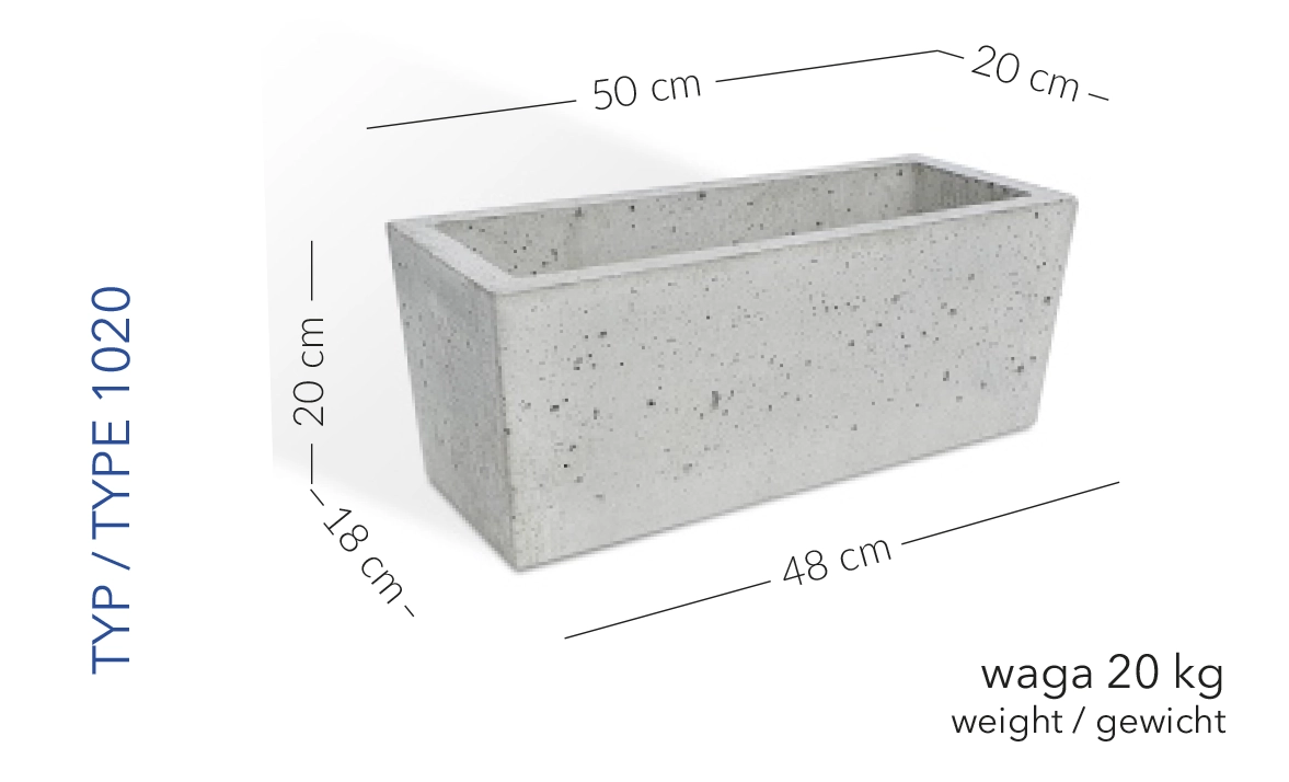 Donica Wenecja 50 x 20 x 20 h jasny szary TYP 1020