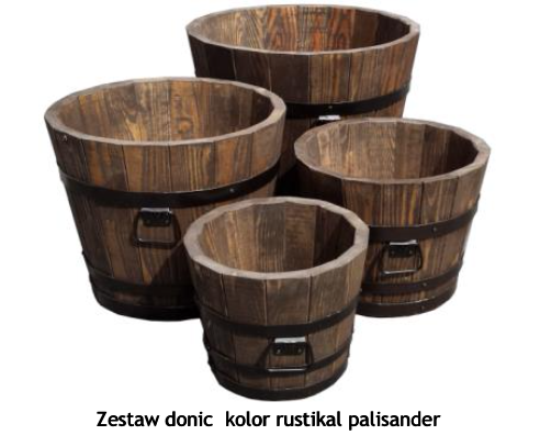Nasze doniczki drewniane z sosny świetnie nadają się do domu, nadadzą nowego blasku w Twoim ogrodzie, a duże donice wyśmienicie spiszą się jako donice balkonowe czy doniczki na taras. Przy produkcji donic sosnowych stosujemy tradycyjną metodę bednarską oraz impregnujemy jedynie ekologicznymi bejcami. Okucia wykonujemy ze stali ocynkowanej, malowanych na czarno lub zależnie od potrzeb klienta.