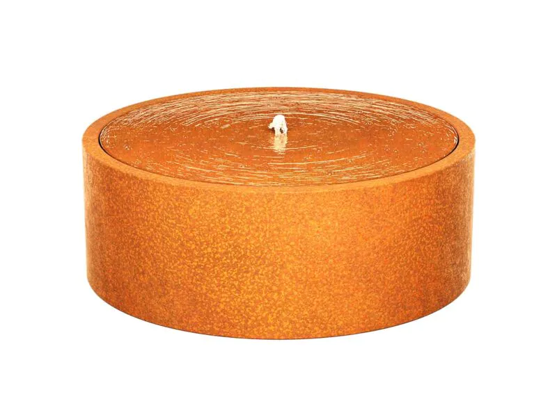 FUENTE FC2 to fontanna ogrodowa o obiegu zamkniętym. Została wykonana ze stali cortenowej o grubości 2mm. Fontanny wykonane ze stali corten są bardzo trwałe i nie wymagają żadnej konserwacji. W zestawie znajduje się wysokiej jakości pompa wodna, a w górnej części zostały wbudowane światła LED wraz z dyszą. Zestaw jest gotowy do uruchomienia – jedyne co trzeba zrobić to wlać wodę do zbiornika oraz podłączyć wtyczkę do prądu.