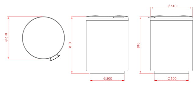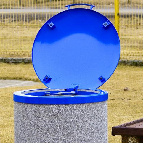 Kosz ulicz­ny okrą­gły o po­jem­no­ści 120 li­trów, śred­ni­cy 61 cm i wysokości 81 cm z po­kry­wą za­bez­pie­czo­ną an­ty­ko­ro­zyj­nie oraz ma­lo­wa­ną prosz­ko­wo do­stęp­ną w ko­lo­rach z pa­le­ty RAL. Po­jem­nik wy­po­sa­żo­ny jest w peł­ną me­ta­lo­wą po­kry­wę z rącz­ką, za­bez­pie­cza­ją­cą przed opa­da­mi at­mos­fe­rycz­ny­mi oraz we­wnętrz­ną ob­ręcz do mo­co­wa­nia wor­ka fo­lio­we­go.