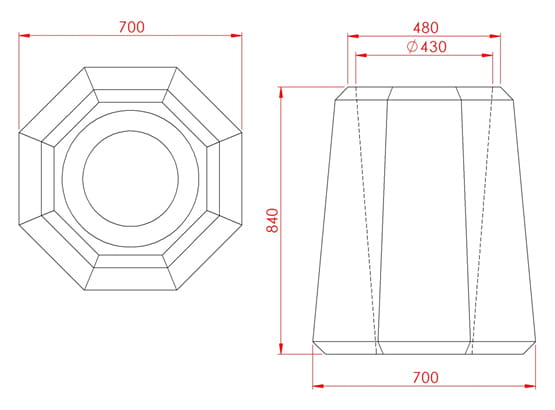 Kosz uliczny „PRIMA” o pojemności 90 litrów o wymiarach zewnętrznych 70 x 70 x wys. 84 cm, posiada kształt ściętego ośmiokątnego stożka bez dna, z charakterystyczną załamaną krawędzią o kącie 45 stopni, wspólną dla wszystkich wyrobów z serii PRIMA. Kosz uliczny „PRIMA” o pojemności 90 litrów o wymiarach zewnętrznych 70 x 70 x wys. 84 cm, posiada kształt ściętego ośmiokątnego stożka bez dna, z charakterystyczną załamaną krawędzią o kącie 45 stopni, wspólną dla wszystkich wyrobów z serii PRIMA.