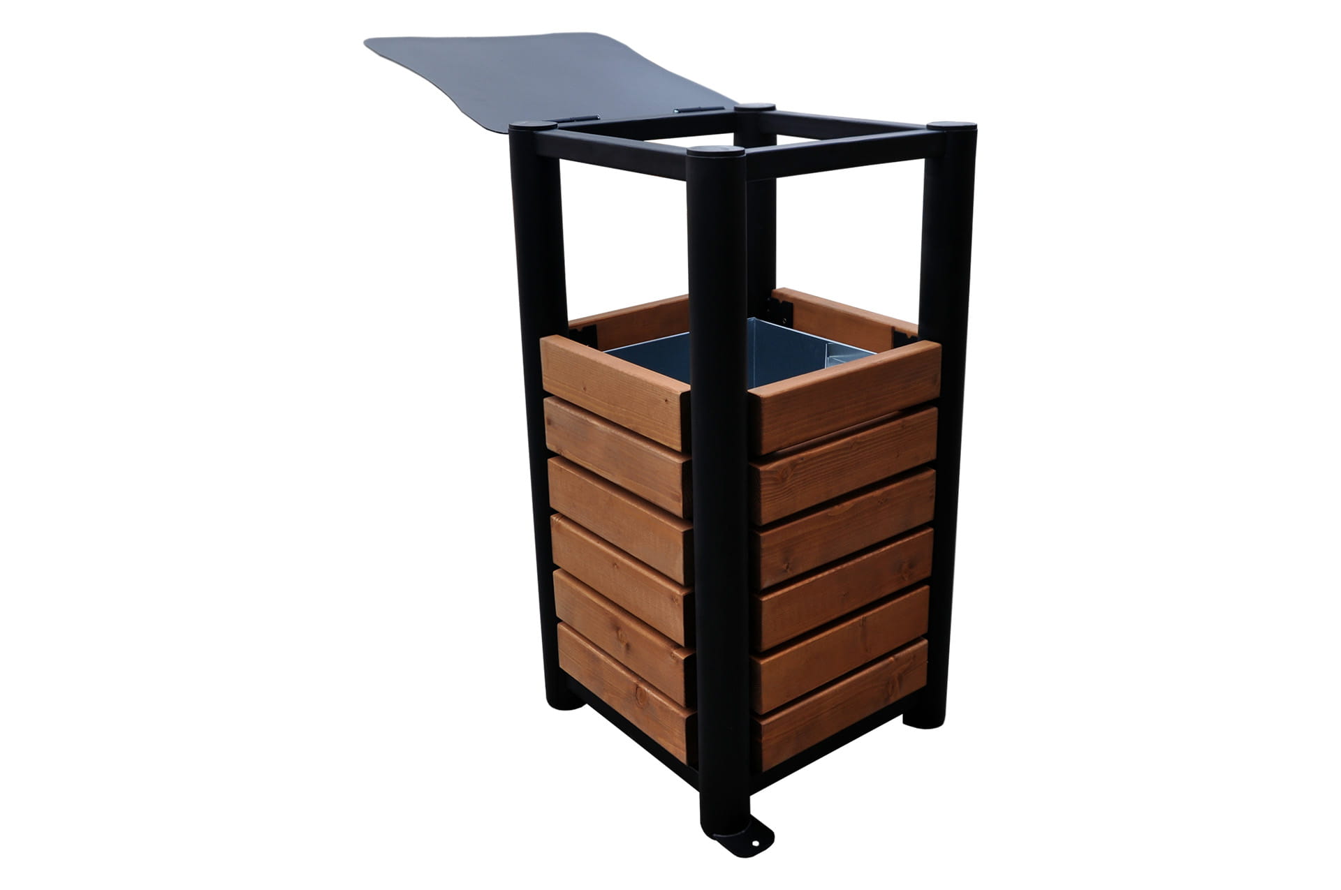 Z myślą o wygodzie i funkcjonalności, Kosz Primario VIP 2 wyposażony jest w uchylny daszek, który ułatwia wrzucanie odpadów i chroni zawartość przed opadami atmosferycznymi. Ponadto, z cynkowanym wkładem, kosz nie tylko jest praktyczny, ale również łatwy w utrzymaniu czystości. Dzięki solidnemu mocowaniu do podłoża, zapewnia stabilność i bezpieczeństwo użytkowania na każdym typie terenu. Do wyboru mają Państwo 8 kolorów desek z poniższej palety.