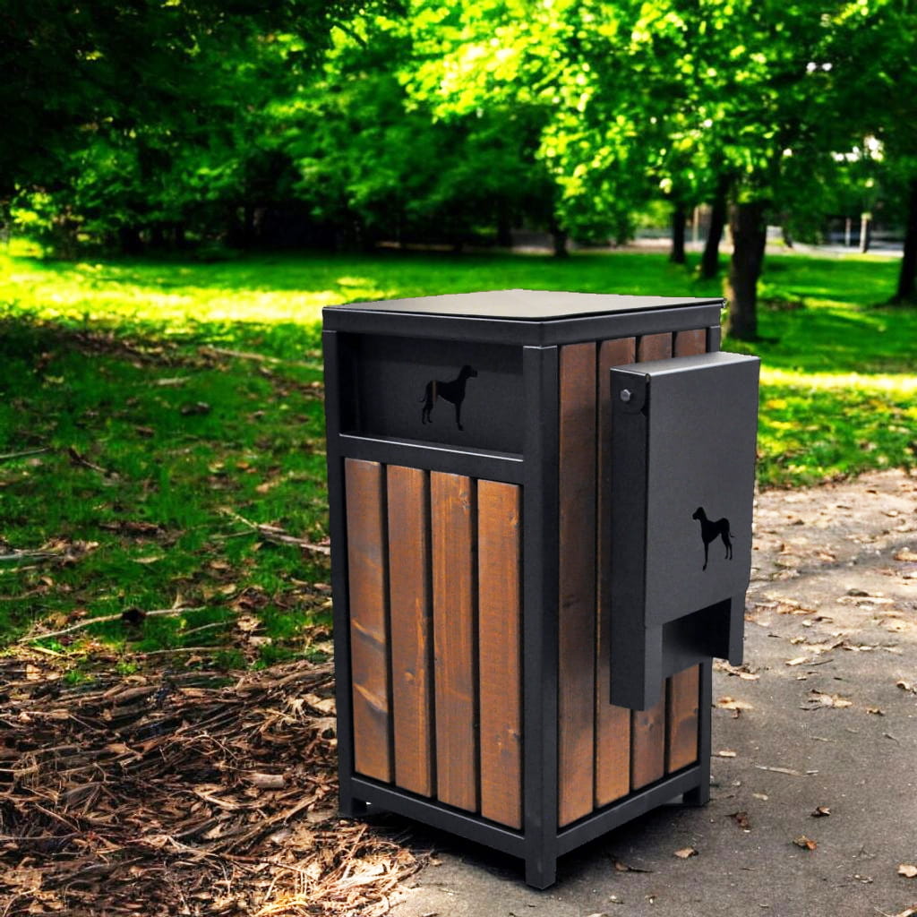 Kosz do parku kwadrat na psie odchody z pojemnikiem na woreczki