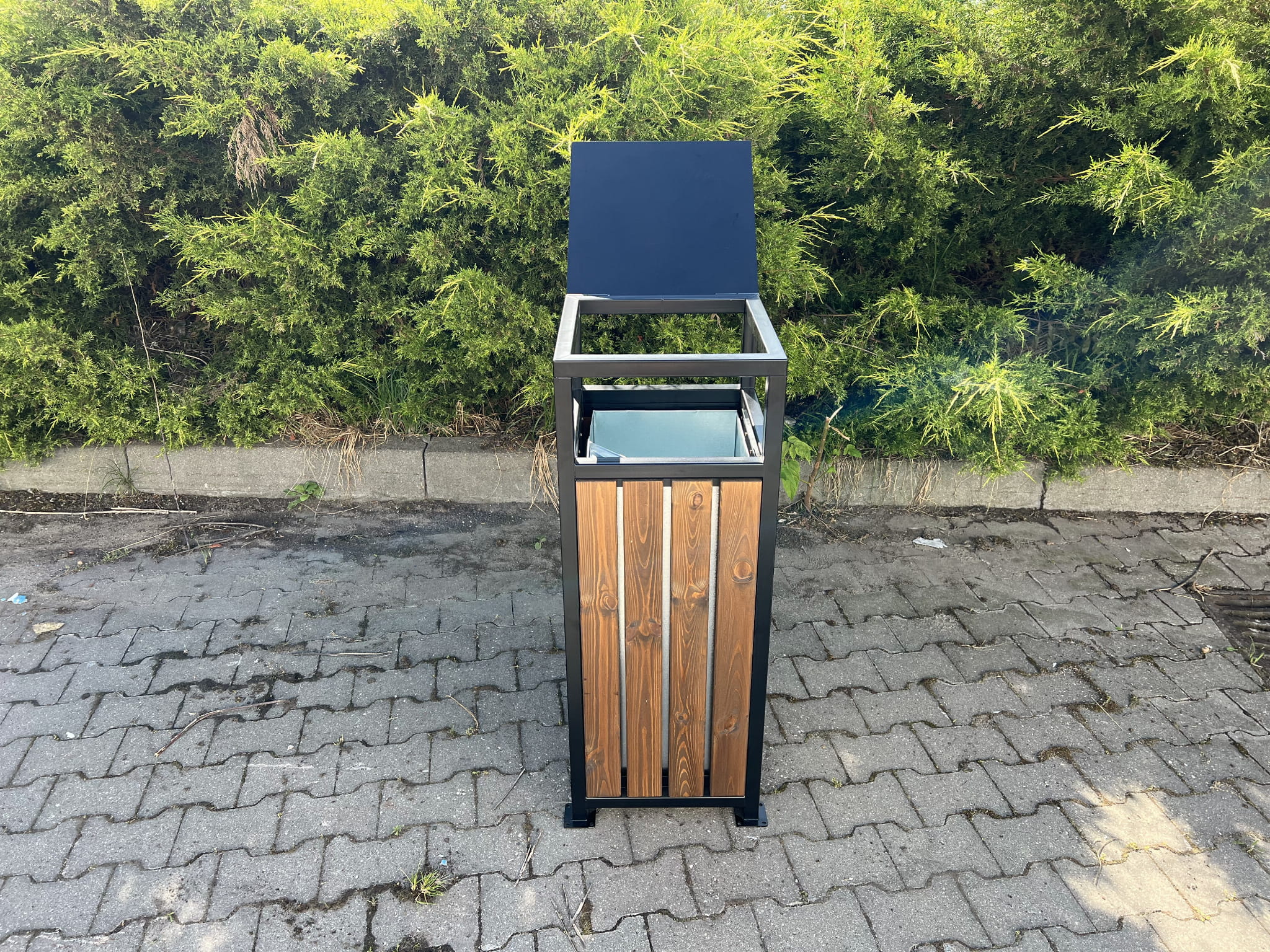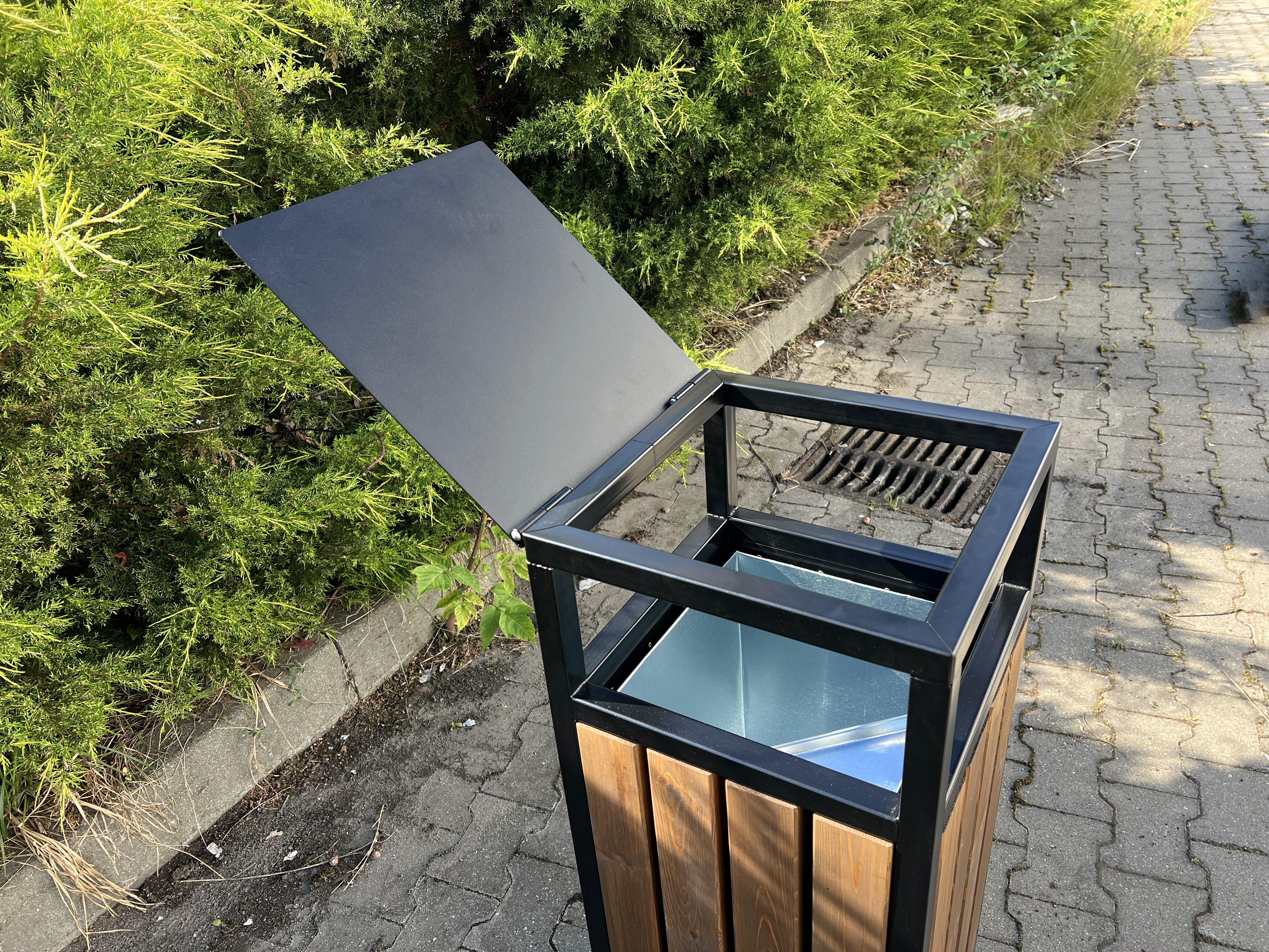 Kosz do parku kwadrat z uchylnym daszkiem 45 l