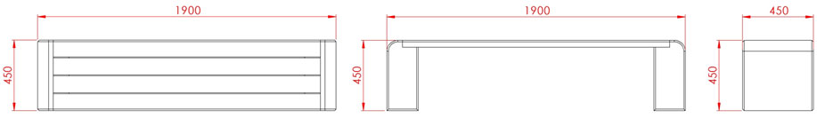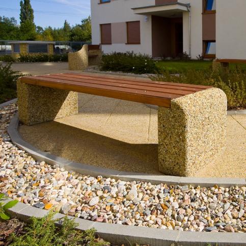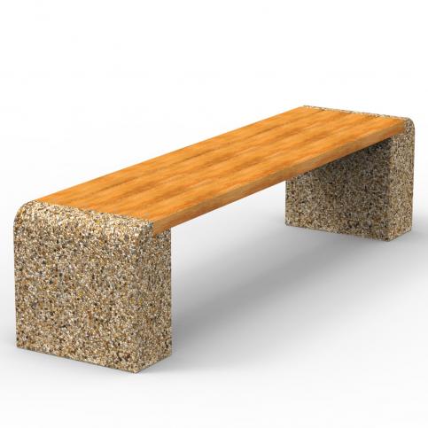 Wolnostojąca ławka betonowa bez oparcia z wygodnym siedziskiem wykonanym z drewna iglastego lub egzotycznego. Siedzisko stanowią cztery  deski o wymiarach: 170x10,8x 4,5cm. siedzisko wykonane z drewna iglastego, zabezpieczonego powierzchniowo impregnatem, jako opcja: tarcica egzotyczna MERANTI. Ławka nie nadaje się do stosowania w miejscach narażonych na kontakt z solami odladzającymi.