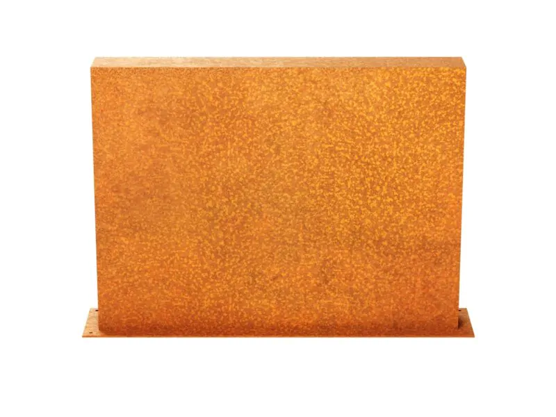 ESPADA D2 to niski, szeroki i prosty panel ogrodowy zamknięty z dwóch stron, który wykorzystywany jest również jako element ścienny. Wykonany jest ze stali cor-ten o grubości 2 mm, posiada podstawę z otworami do łatwego montażu oraz wzmocnienia wewnętrzne.