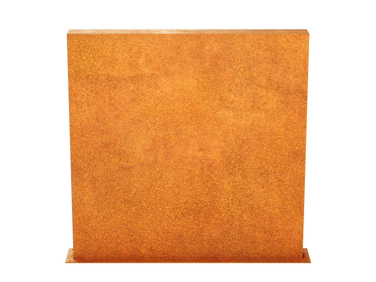 ESPADA E4 to szeroki i prosty panel ogrodowy zamknięty z dwóch stron o średniej wysokości. Wykonany jest ze stali corten o grubości 2 mm. Posiada otwory montażowe oraz odpowiednią ilość wzmocnień.