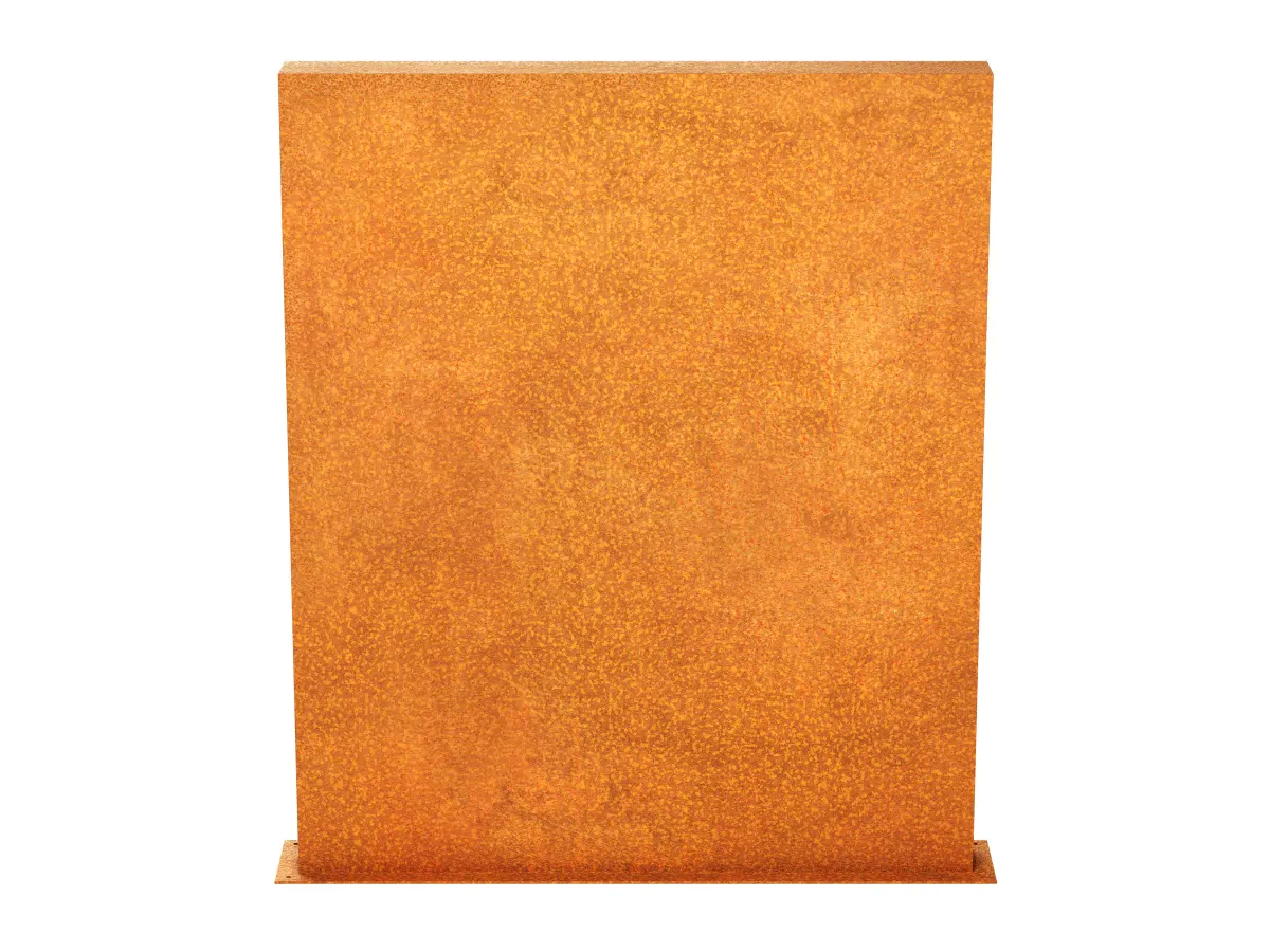 ESPADA E5 to wysoki, szeroki i jednolity panel ogrodowy zamknięty z dwóch stron, który cieszy się sporym zainteresowaniem w architekturze miejskiej. Jego naturalny wygląd, a zarazem podwyższona odporność na warunki atmosferyczne idealnie wpisują się w najnowsze trendy. Wykonany jest ze stali kortenowskiej o grubości 2 mm. Posiada podstawę z otworami montażowymi oraz niezbędną ilość wsporników.