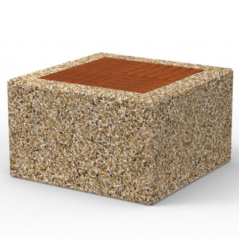 Wolnostojące siedzisko betonowe bez oparcia z odeskowaniem wykonanym z drewna iglastego lub egzotycznego. Odeskowanie stanowi dwadzieścia desek o wymiarach  36,3 x 6,9 x 3cm, przymocowane do stelażu stalowego. Wyrób dostarczony do klienta w jednym elemencie, gotowy do rozstawienia. Wyrób nie nadaje się do stosowania w miejscach narażonych na kontakt z solami odladzającymi.