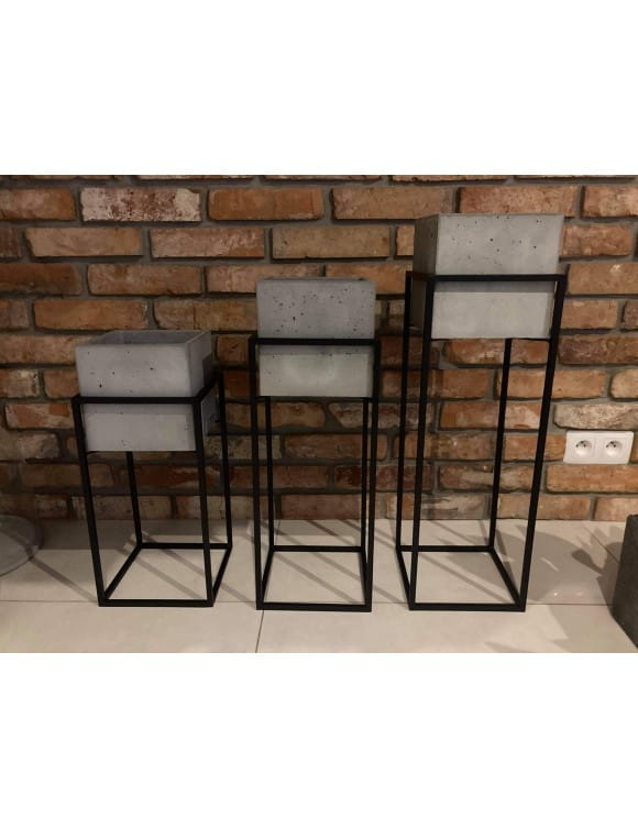 Nowoczesny, metalowy kwietnik, stojak loft z donicą betonową. Piękny minimalistyczny wykonany z czarnego metalu doskonale wkomponuje się w każde loftowe wnętrze. Stojak, donica sprawdzi się również w aranżacjach na tarasie, balkonie czy w biurze. Solidne wykonania sprawi, że przez wiele lat będzie zdobiła Nasze wnętrza. W połączeniu z kwietnikami o różnych rozmiarach stworzy niezwykłe, oryginalne dekoracje w loftowym wnętrzu.