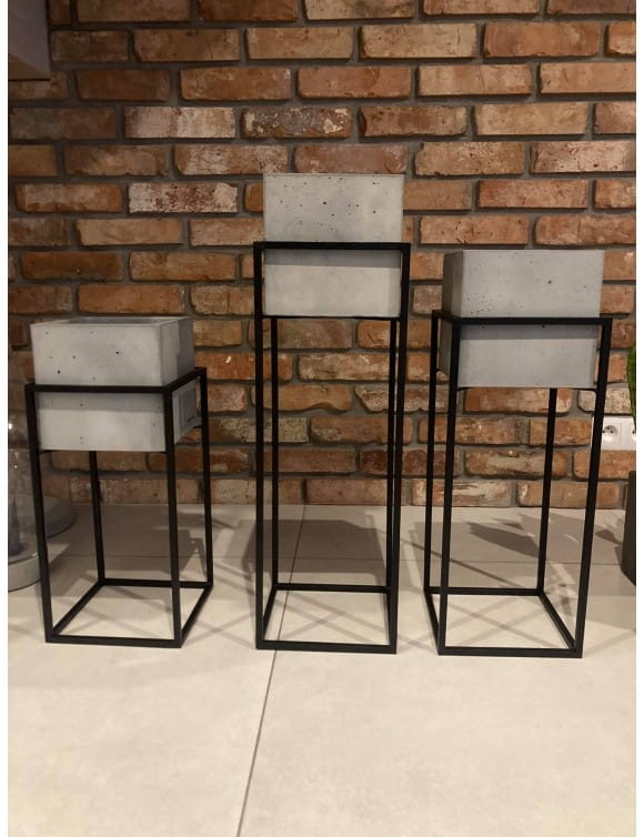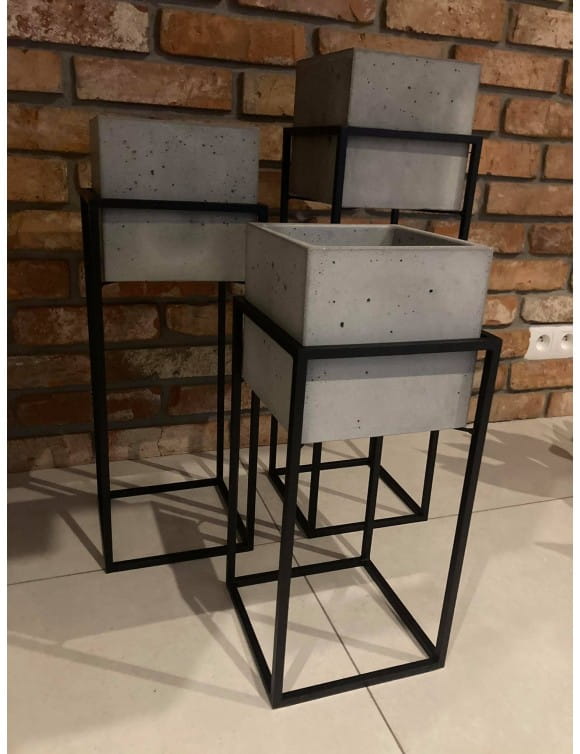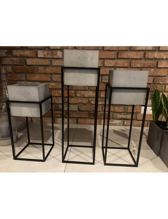 Nowoczesny, metalowy kwietnik, stojak loft z donicą betonową. Piękny minimalistyczny wykonany z czarnego metalu doskonale wkomponuje się w każde loftowe wnętrze. Stojak, donica sprawdzi się również w aranżacjach na tarasie, balkonie czy w biurze. Solidne wykonania sprawi, że przez wiele lat będzie zdobiła Nasze wnętrza. W połączeniu z kwietnikami o różnych rozmiarach stworzy niezwykłe, oryginalne dekoracje w loftowym wnętrzu.
