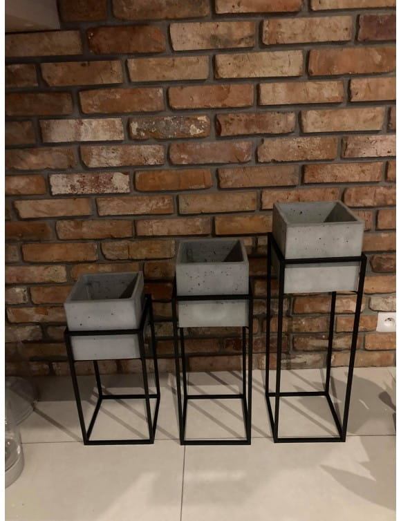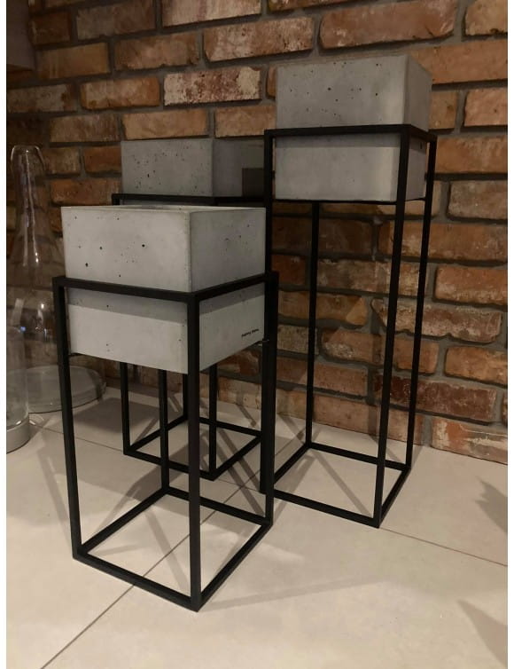 Nowoczesny, metalowy kwietnik, stojak loft z donicą betonową. Piękny minimalistyczny wykonany z czarnego metalu doskonale wkomponuje się w każde loftowe wnętrze. Stojak, donica sprawdzi się również w aranżacjach na tarasie, balkonie czy w biurze. Solidne wykonania sprawi, że przez wiele lat będzie zdobiła Nasze wnętrza. W połączeniu z kwietnikami o różnych rozmiarach stworzy niezwykłe, oryginalne dekoracje w loftowym wnętrzu.