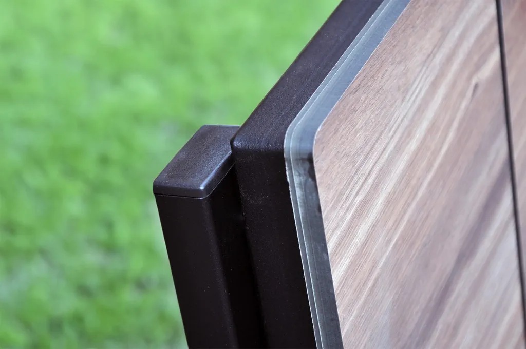 - Laminat HPL, dzięki swojej odporności na warunki atmosferyczne, wilgoć, promieniowanie UV oraz zarysowania, jest gwarancją, że ławka Grande zachowa swój nieskazitelny wygląd przez długie lata, bez konieczności częstej konserwacji.